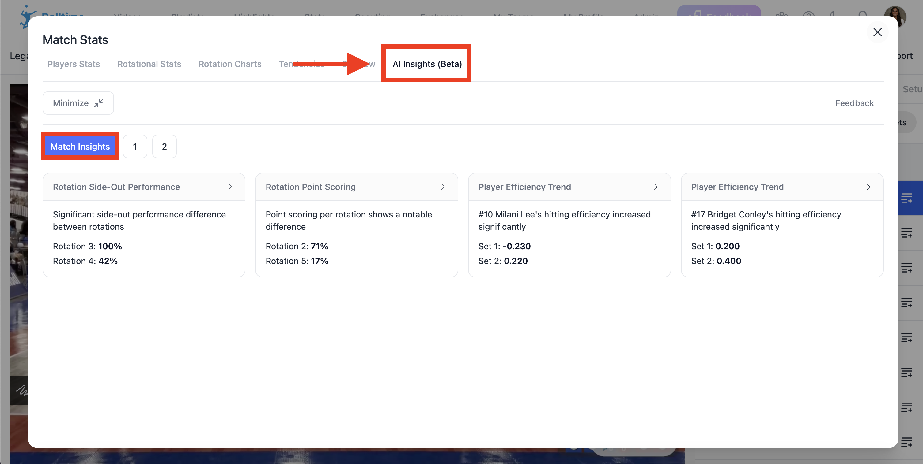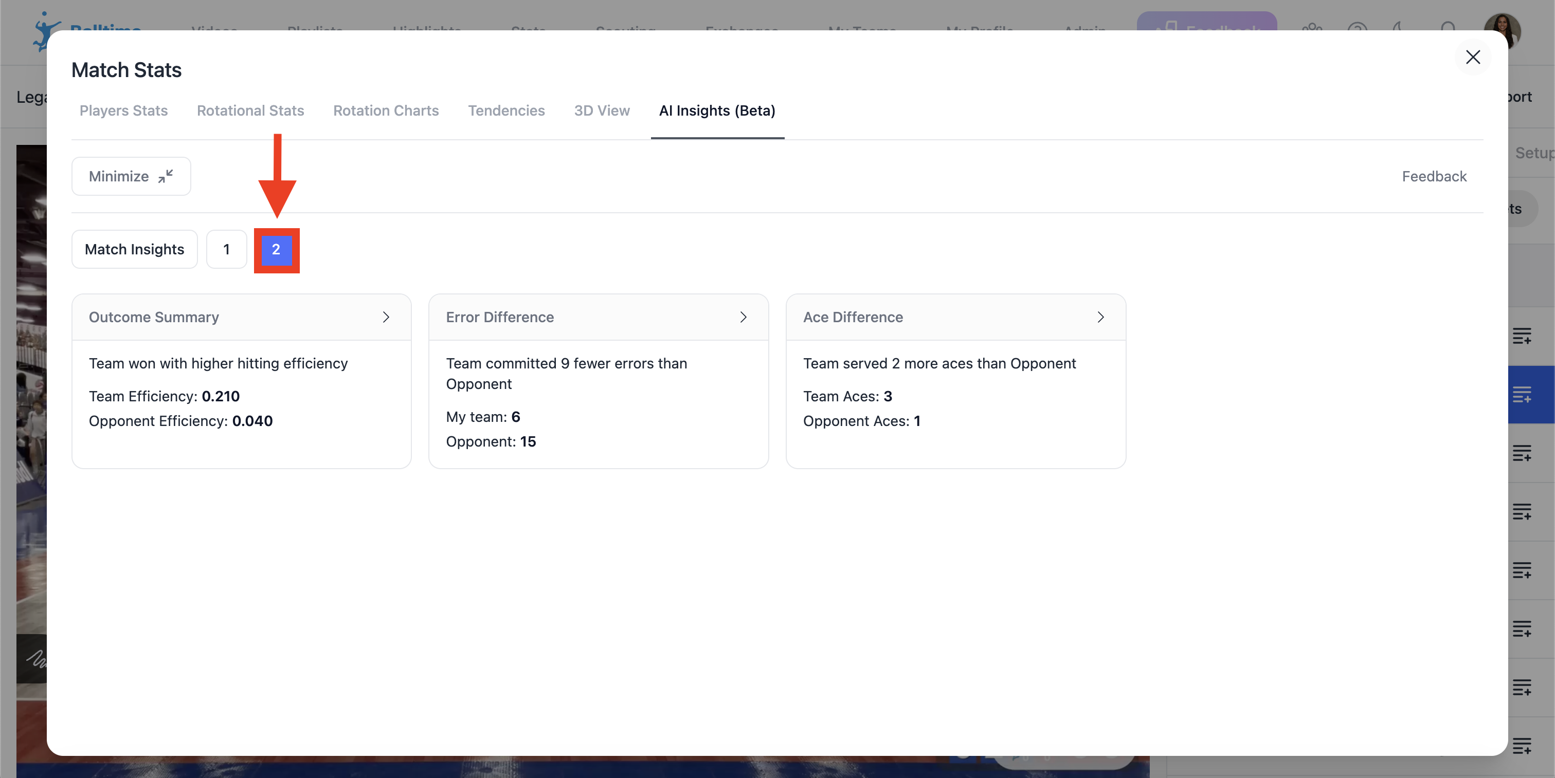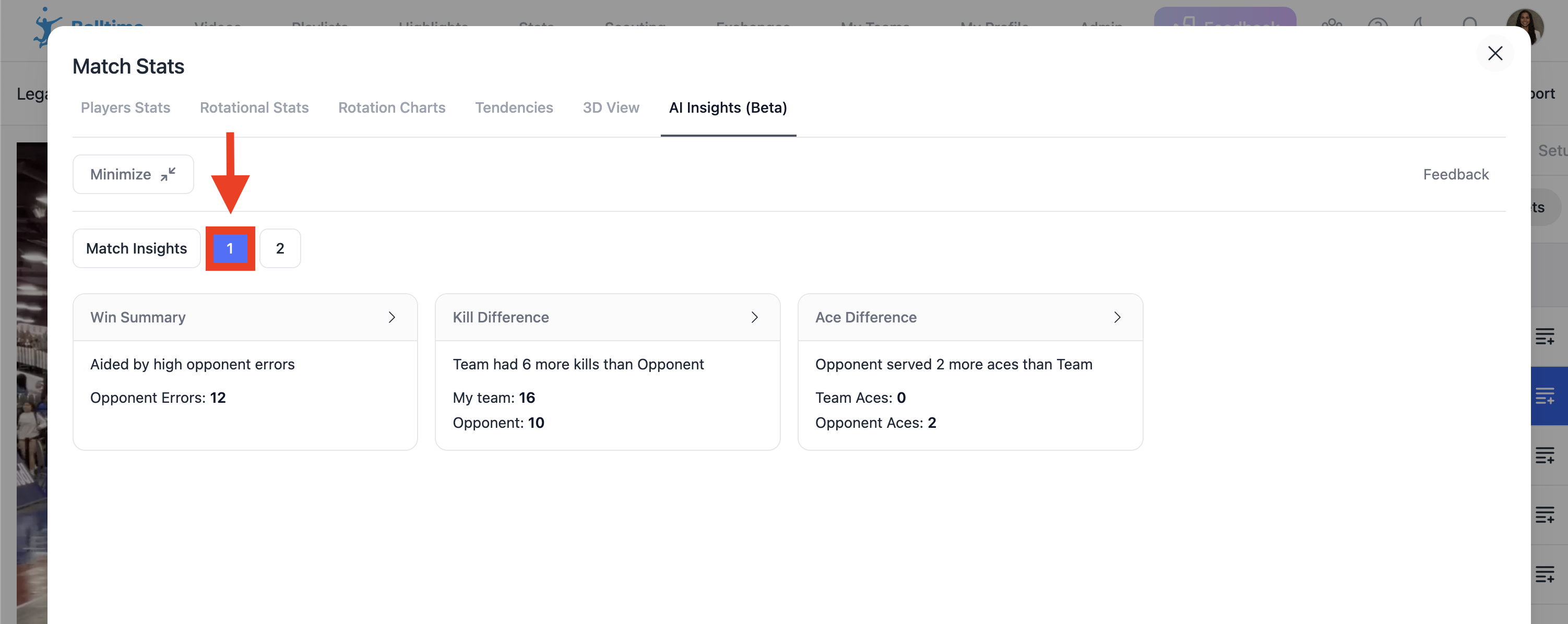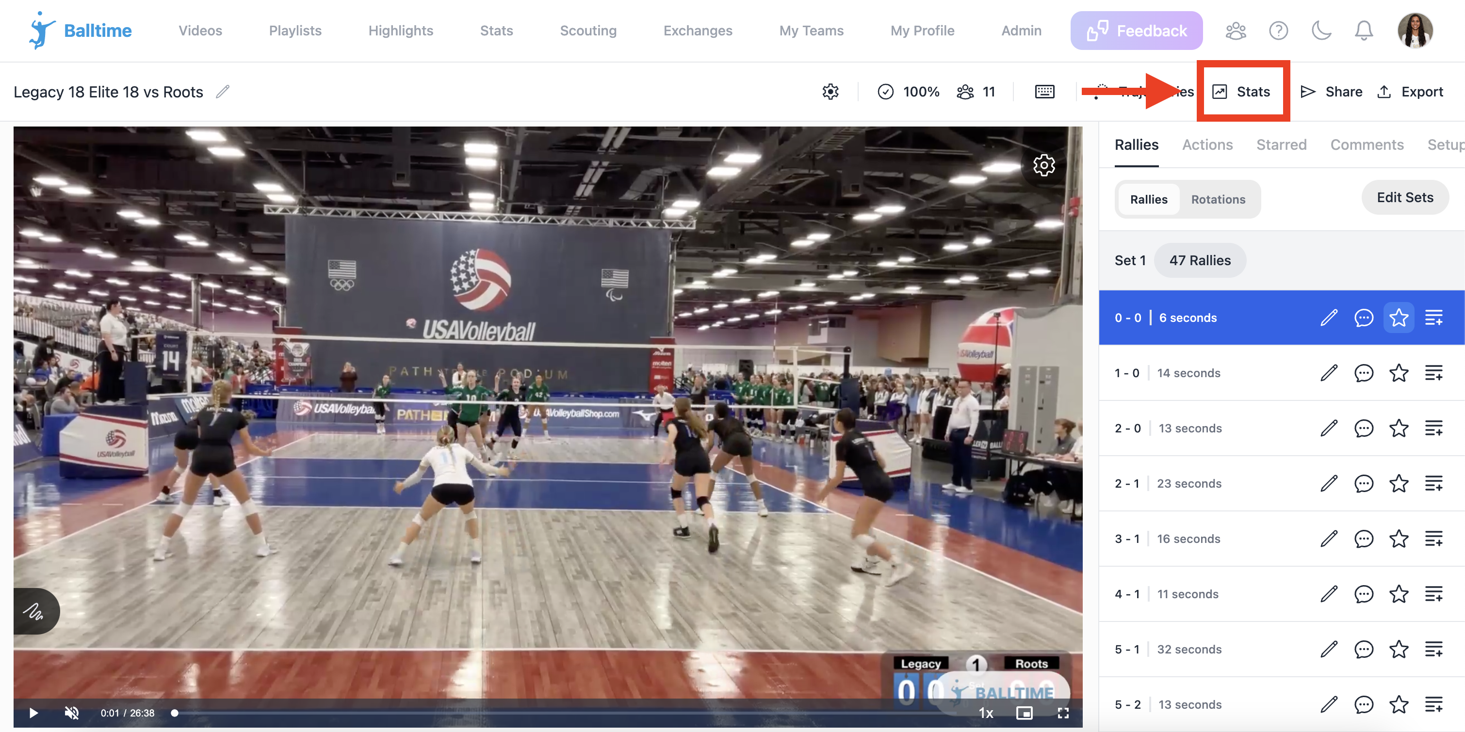 1. In your Videos tab, select the match that you want to review and click on **Stats**.&#x20;