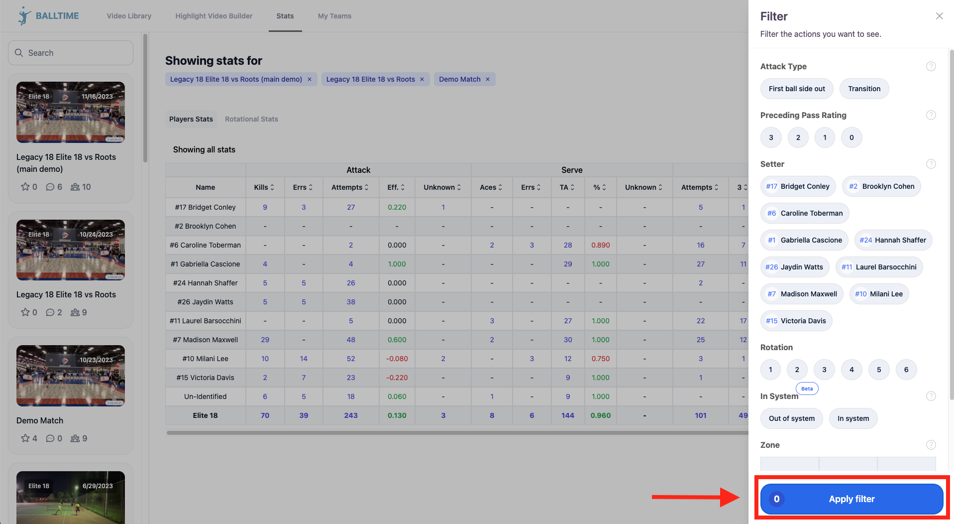 Review stats by using filters.